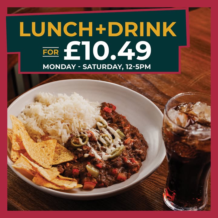 Lunch and a drink for £10.49 – gammon, burger, scampi, chilli & more… what’s it gonna be?